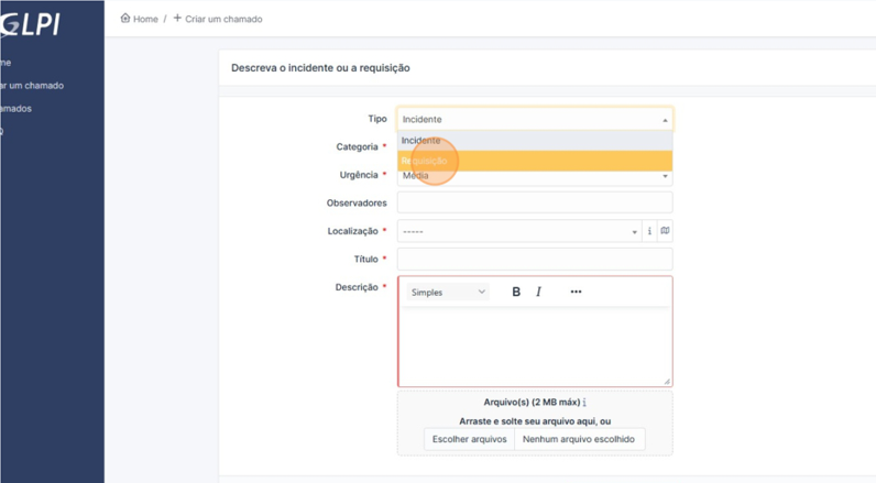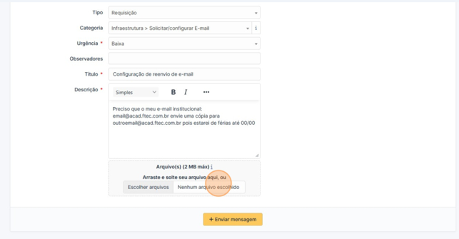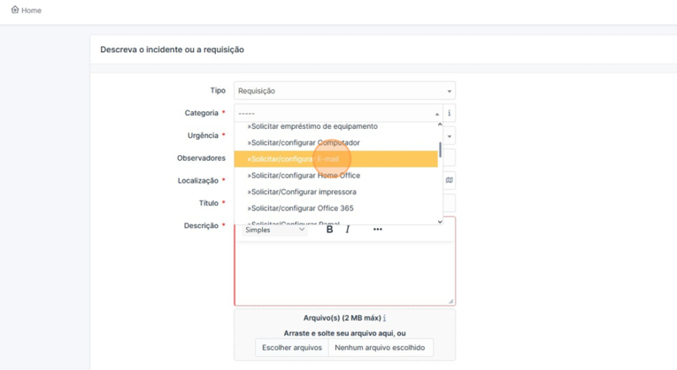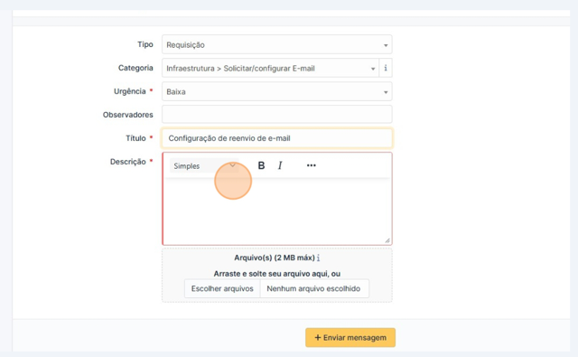 • Quando pertinente, anexe imagens ou capturas de tela para complementar a solicitação.