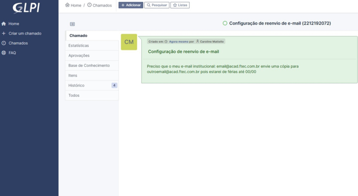 • Dentro do chamado, acompanhe o histórico e as atualizações registradas pela equipe;
