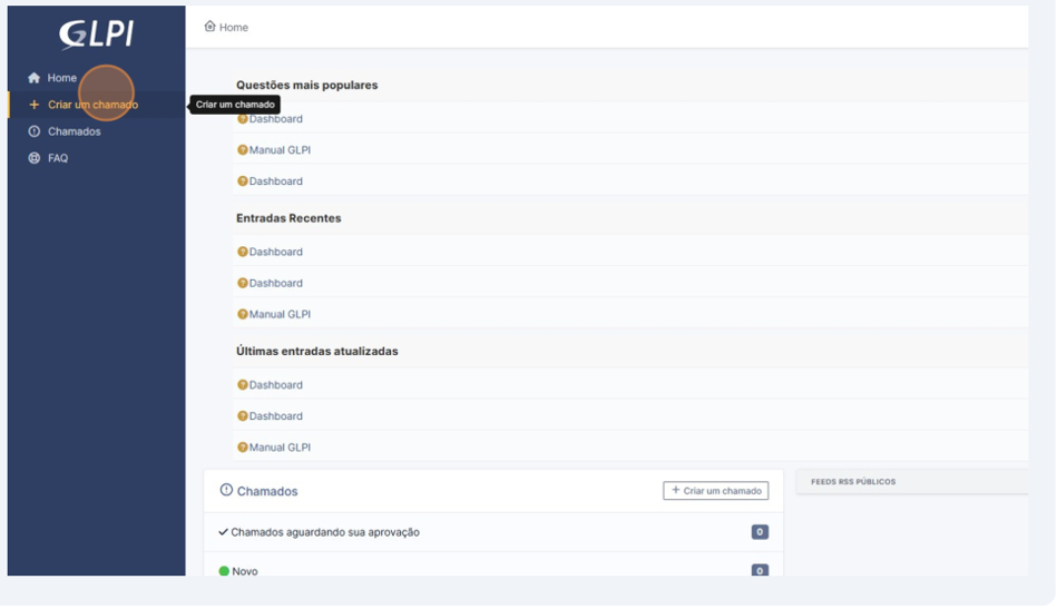 • Após definir o setor correto, acesse o menu lateral e clique em criar um chamado.