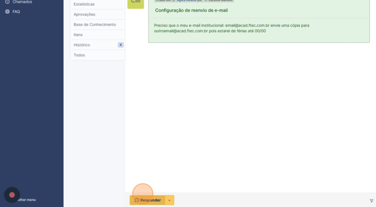 • Caso seja necessário complementar alguma informação, clique em Responder, escreva a observação e finalize em Adicionar.